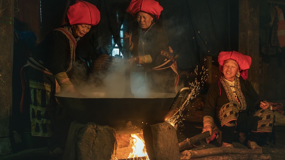 En fin d’après-midi, vous partagez le quotidien d’une famille locale : préparation du dîner, découverte de la cuisine traditionnelle, échange sur leur mode de vie, leurs rituels et leurs croyances. La soirée se poursuit avec un bain chaud aux herbes, mélange de plus de 20 plantes, idéal pour délasser le corps après le voyage. Vous rencontrez ensuite un chamane Dao Rouge qui vous initiera à la spiritualité montagnarde, aux cérémonies et aux légendes de son peuple. Une immersion rare, culturelle et profondément humaine. Nuit chez l’habitant au cœur du village.